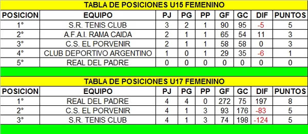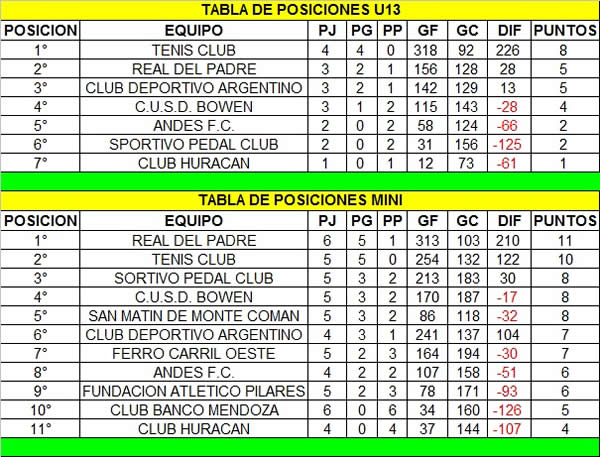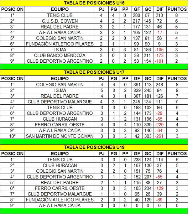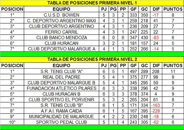 Tabla de posiciones actualizada