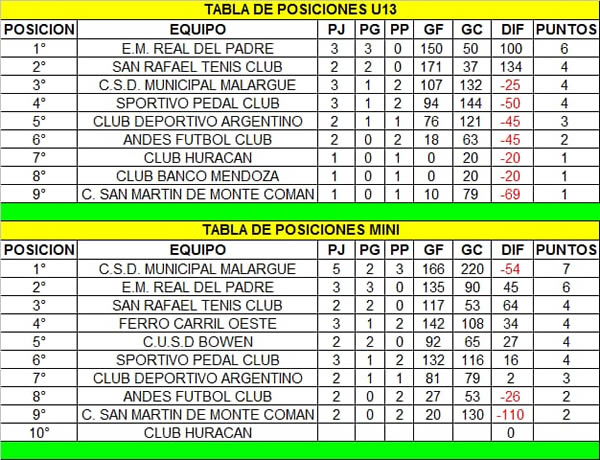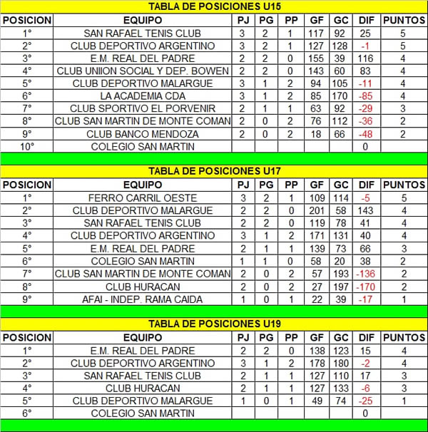 Tablas actualizadas Setiembre