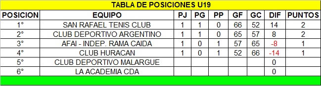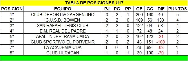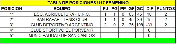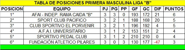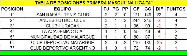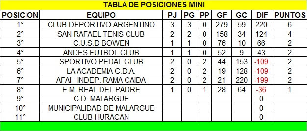 Tablas de posiciones al 05/09